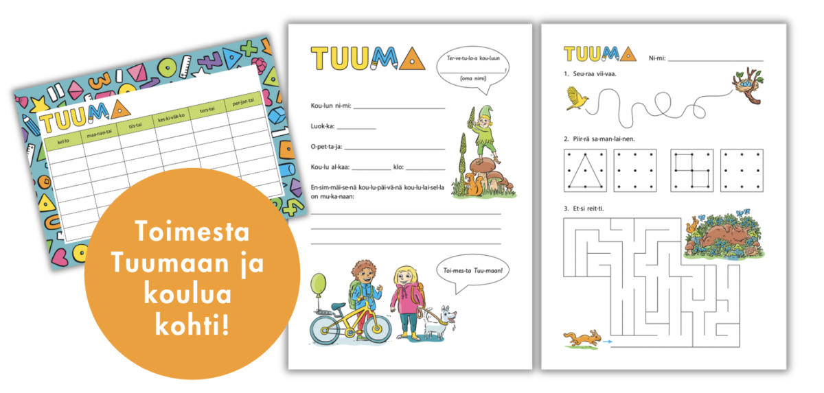 Matematiikassa käydään toimesta Tuumaan! Tulosta tästä koulutulokasmateriaalit ja Tuuman lukujärjestys.