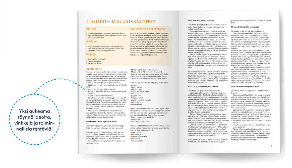linjattujen työskentelyntaitojen opetteluun: konkretia, piirtäminen, suulliset ja kirjalliset
