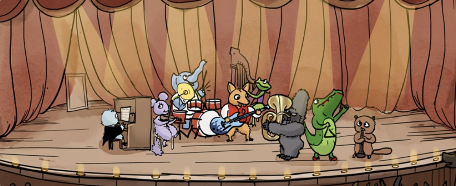 Matkan varrella hän tapaa ystäviä, jotka opettavat hänelle musiikin peruskäsitteet: miten nuotteja luetaan ja soitetaan. Jokainen luku esittelee yhden uuden käsitteen, jota vahvistetaan elokuvien, laulujen, pelien ja aktiviteettien avulla.