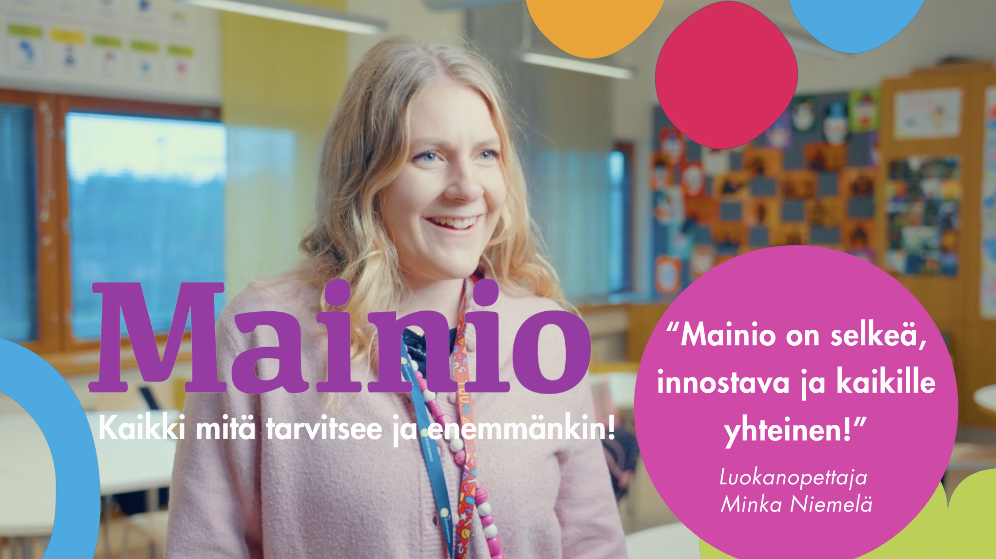 Mainion kanssa työskentely on todella selkeää ja opettajan työtä helpottavaa. Opettajan ei tarvitse itse lisämateriaalia tehdä, koska Mainiosta löydät kaiken mitä tarvitset.